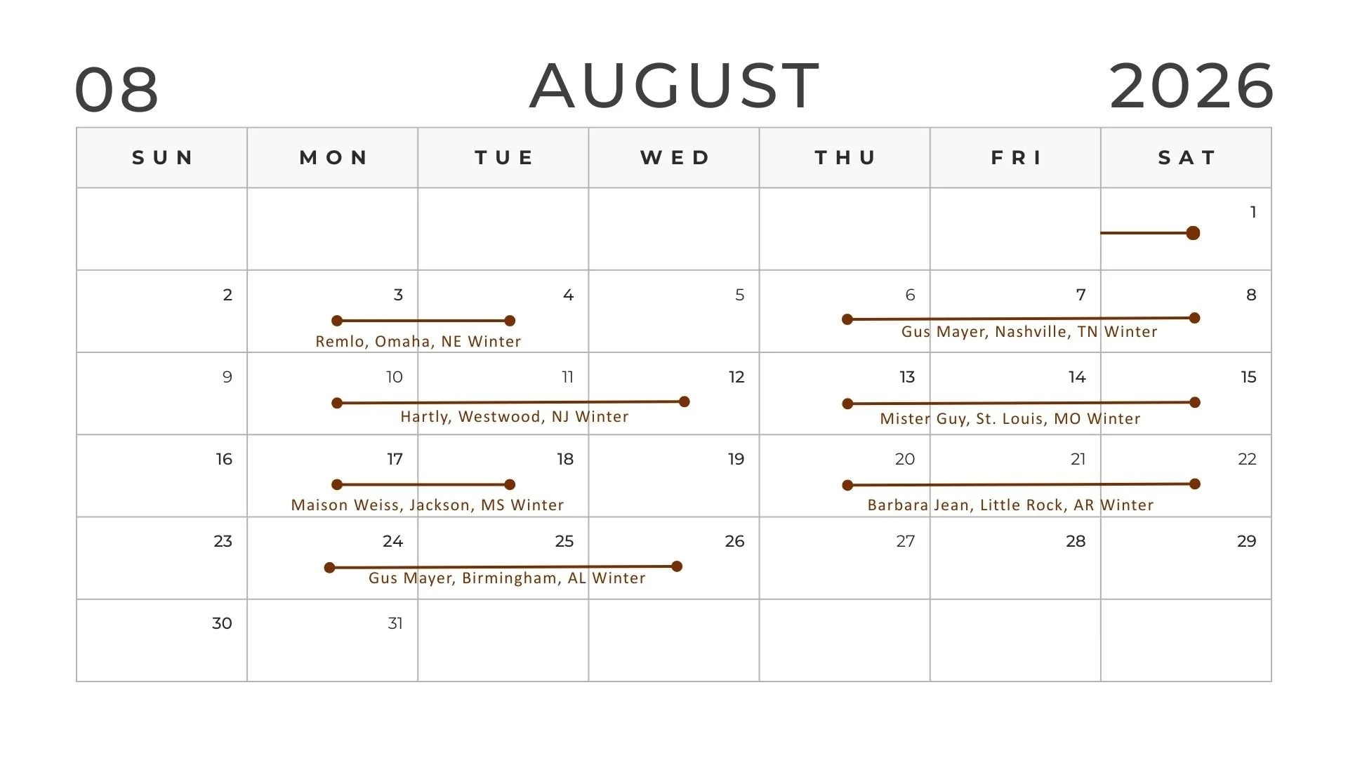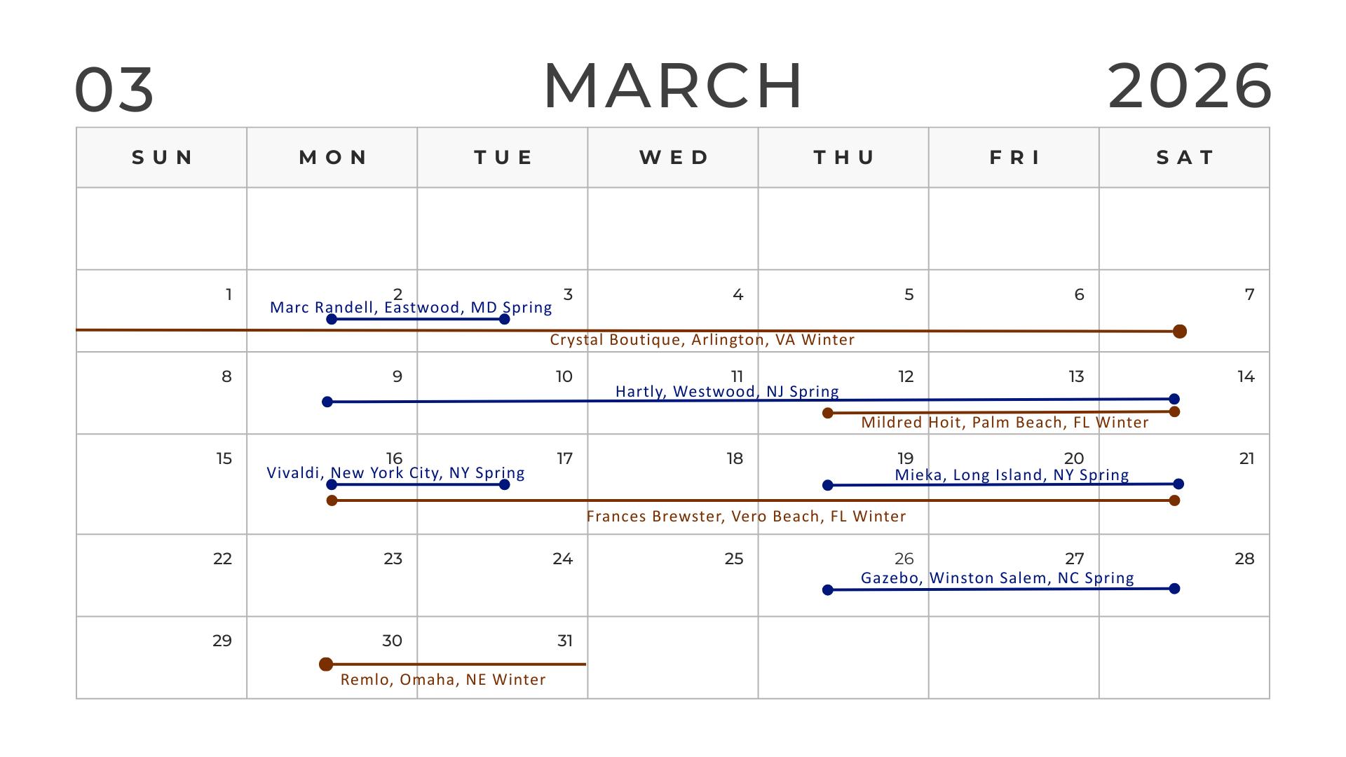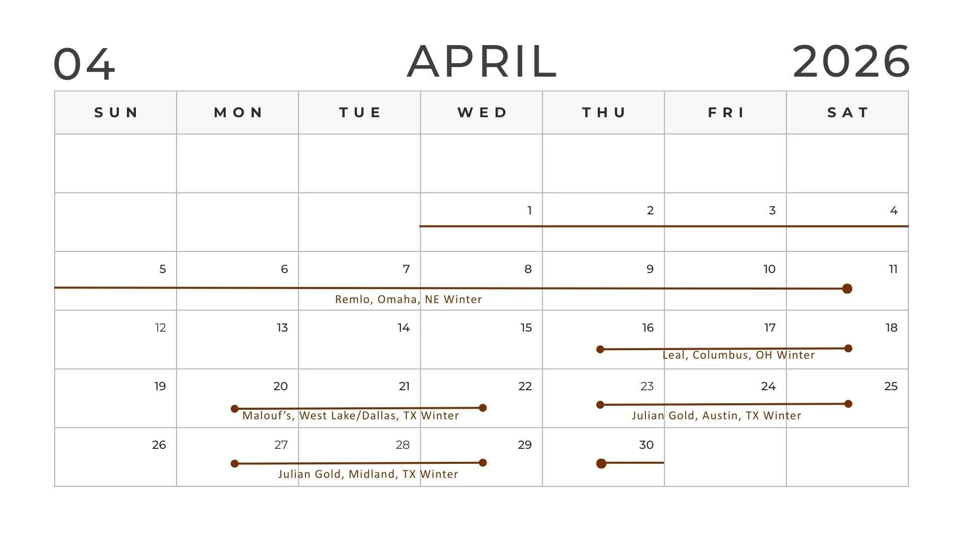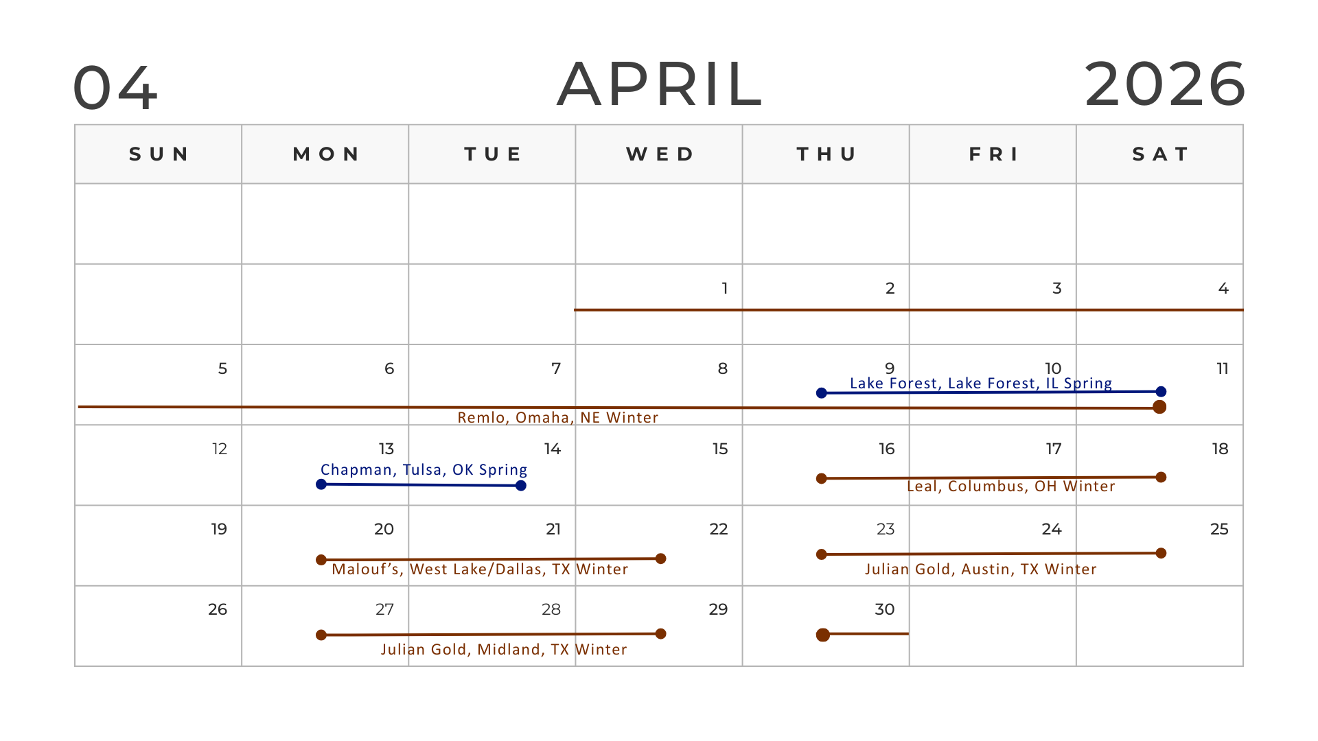 Locate a trunk show in your area and join us in person. At the trunk show you can view our samples and design your dream selections, all made to order, of course.