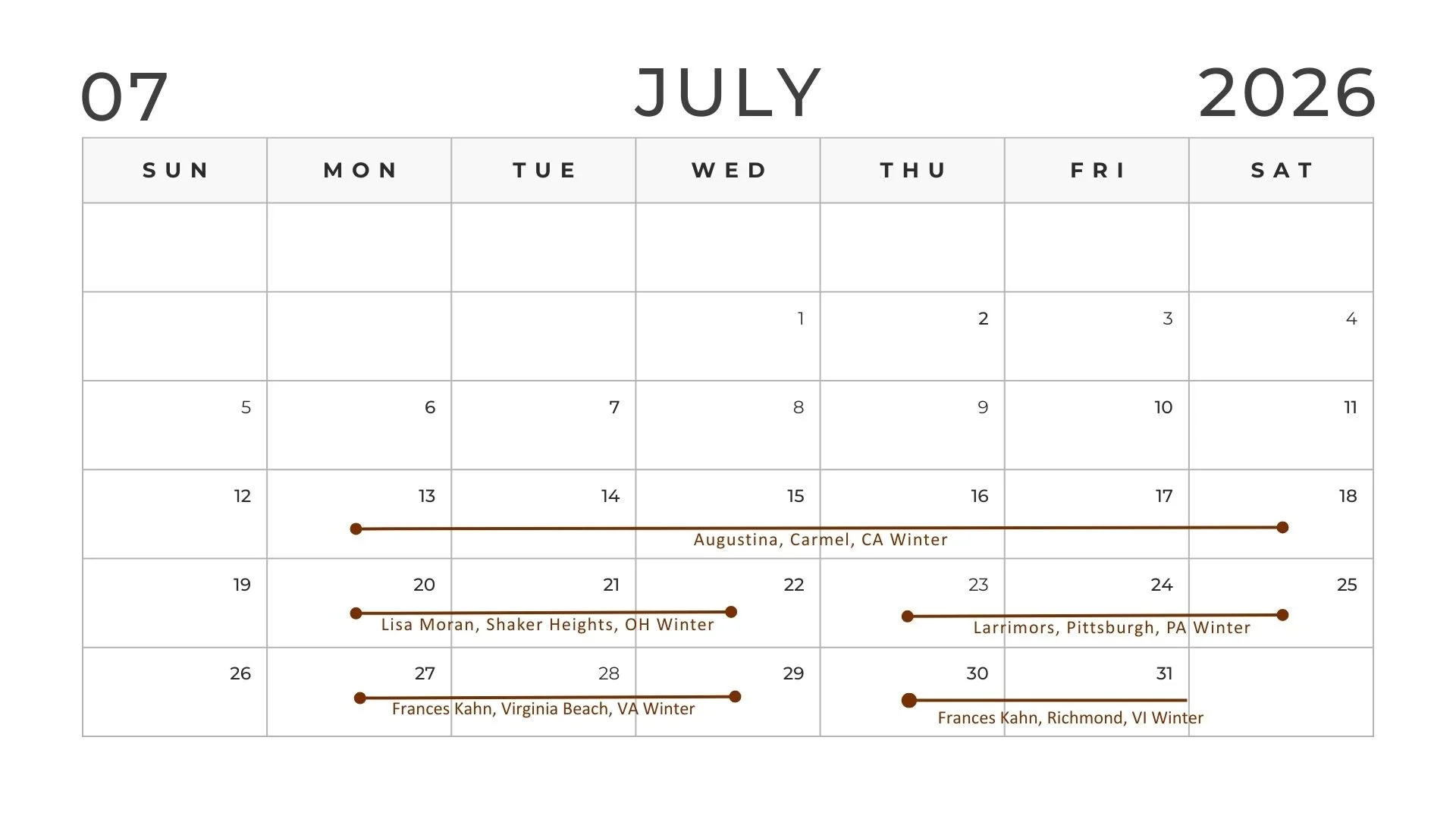 If you are a new client we will walk you through measurements and selections to build your pieces just for you.